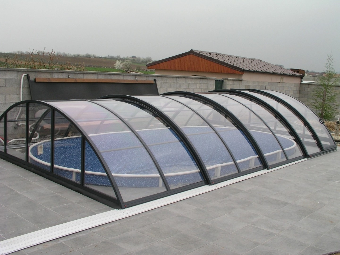 Wysokość zadaszenia basenowego KLASIK w najmniejszym segmencie wynosi od 1000 mm, w zależności od liczby segmentów i szerokości zadaszenia.