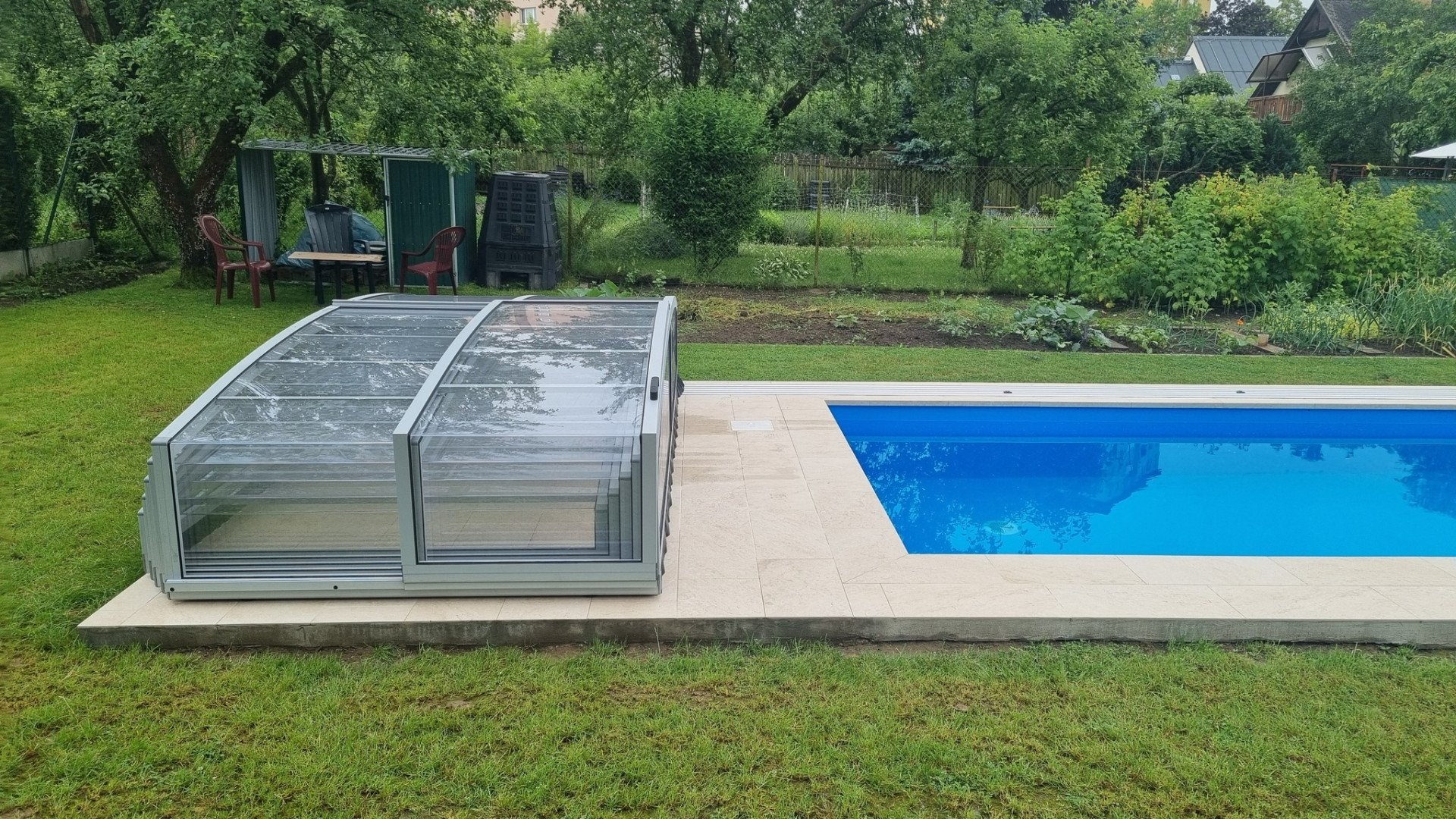 Zadaszenie basenu PREMIER to nasz nowy model, który spełnia najwyższe wymagania dotyczące designu i estetyki. Model wyposażony jest w system przesuwu z pojedynczą szyną. Należy do niskich zadaszeń, pod którymi można pływać.